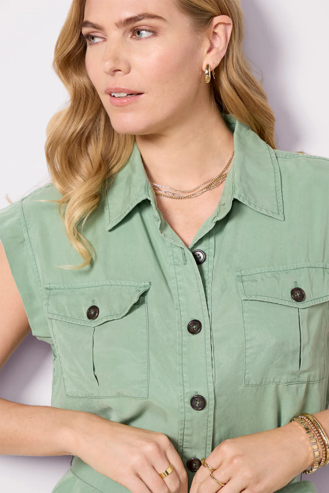 Elevate your everyday casual look with the Diana Surplus Dress from Sanctuary. Crafted in soft Lyocell, this dress features front button closures, a removable tie waist belt, and two chest pockets. Pair with sandals and a tote bag for a chic look.Â