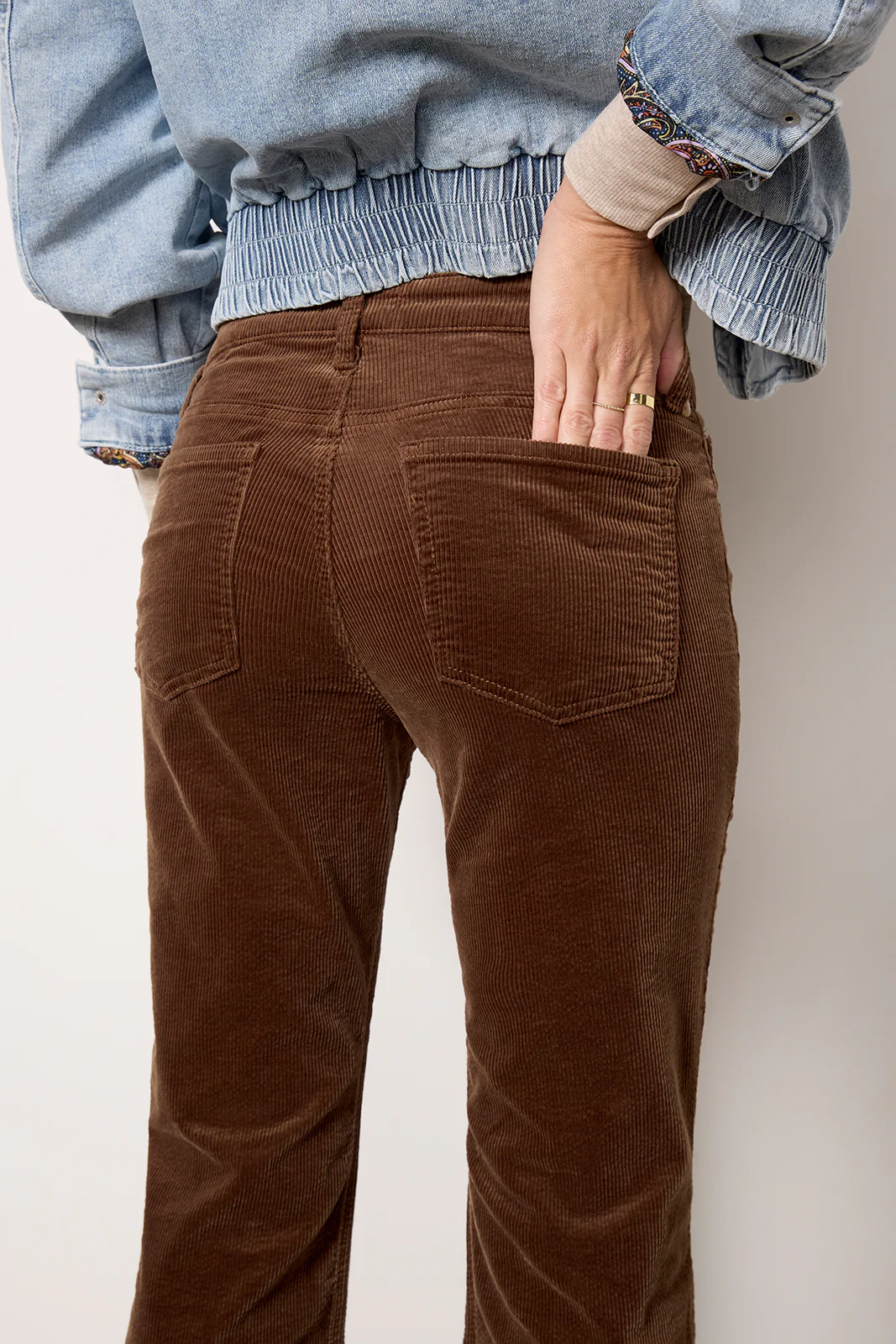 These corduroy pants by Kut From The Kloth are perfect for your seasonal wardrobe, featuring a flattering bootcut silhouette with a mid-rise waist and raw hems cropped at the ankle.