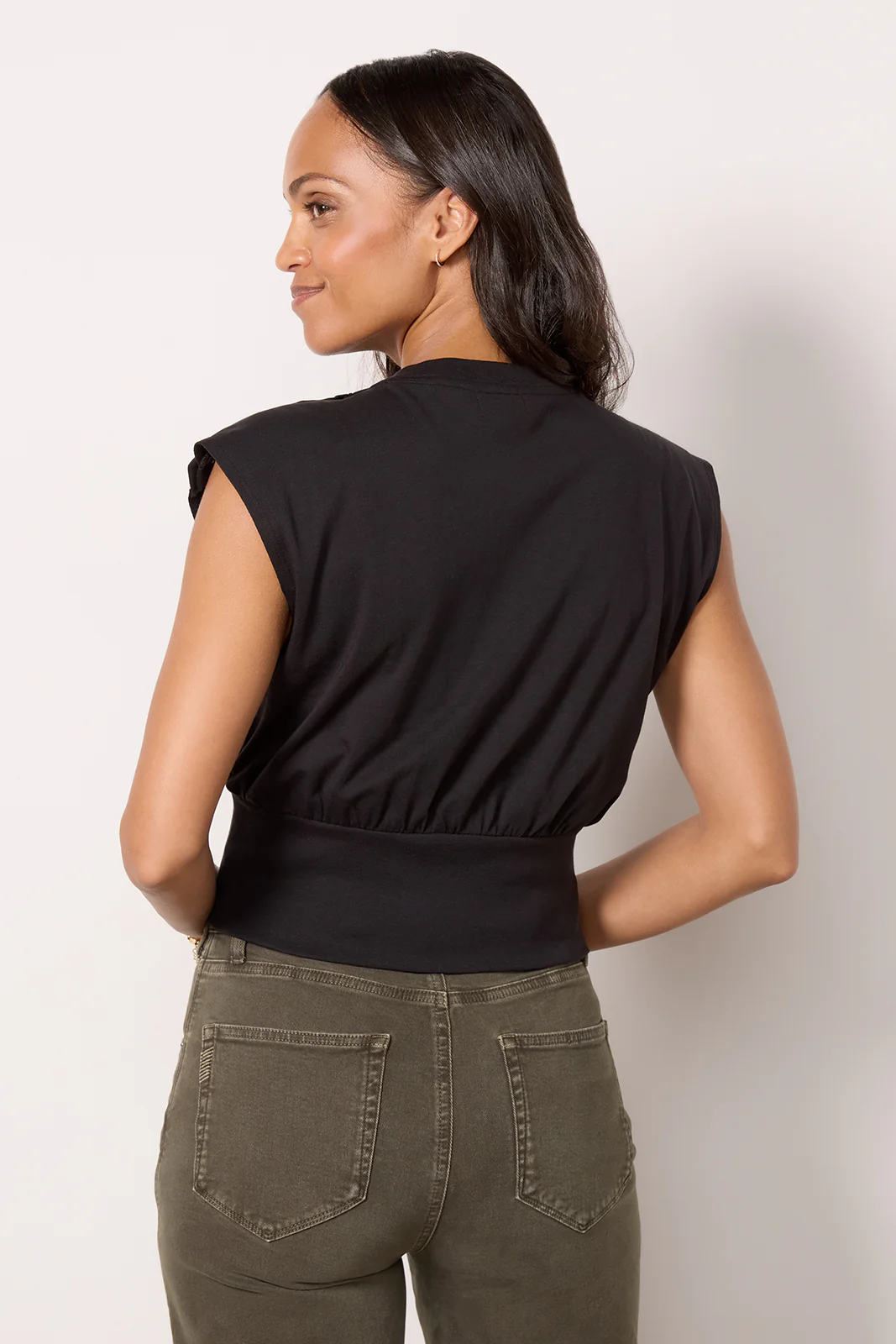 Gold shoulder snaps and a fitted, banded hem add chic style to this Nation LTD top, featuring a sleeveless blouson silhouette, cropped length, and organic Pima cotton fabric. Pair it with cargo pants or your favorite wide leg jeans.