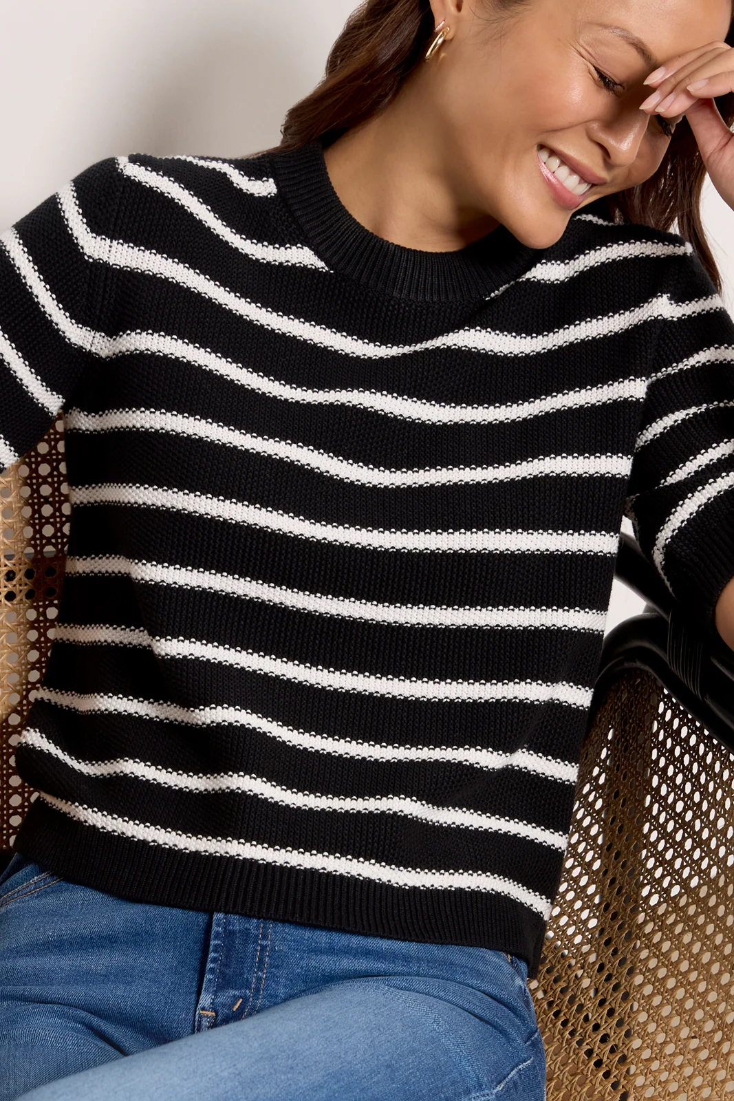 Elevate your wardrobe with this striped sweater by French Connection, featuring a cropped silhouette, textured knit, and short puff sleeves. Wear it with cargo pants or wide leg jeans.