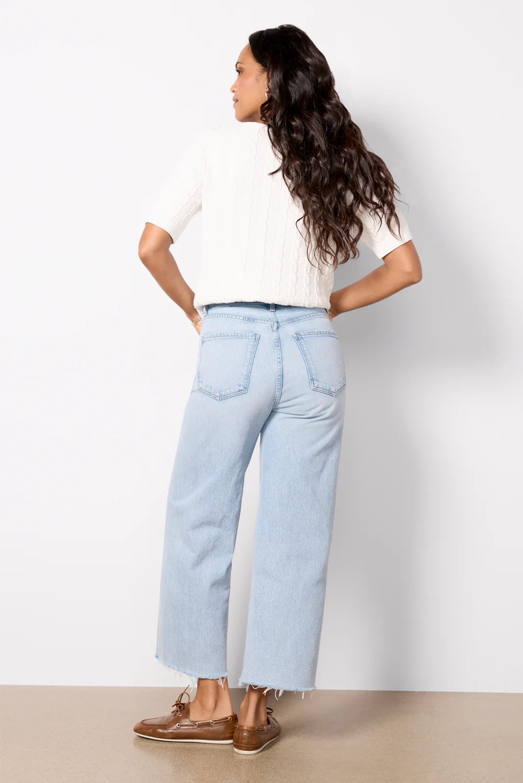 Crafted in soft, sustainable denim fabric, the Ren Jean by AGOLDE features a wide leg silhouette with a high-rise waist and ankle-length raw hems. The versatile light wash makes them perfect for day-to-night wear.